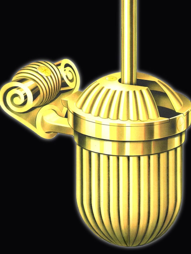 * Brass / gold-plated - With and without wall bracket - With container for toilet paper rolls
